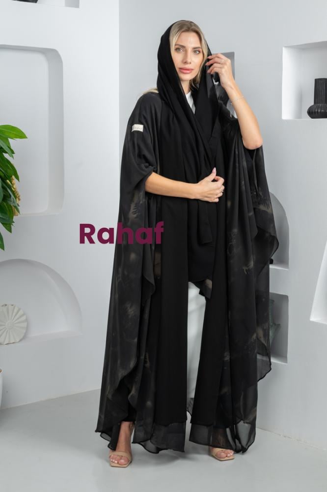 بتصميم انسيابي ناعم يبرز جمال القماش وخفته، تمنحك هذه العباية حضورًا أنيقًا يناسب جميع المناسبات، مع لمسة المصممة رهف التي تجمع بين الفخامة والذوق العصري.