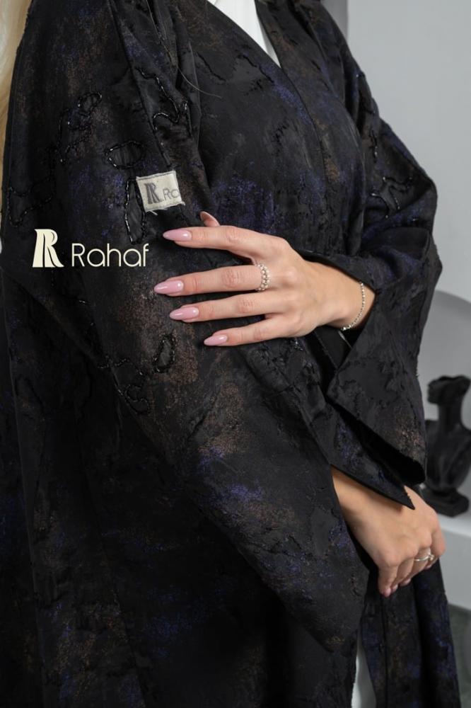 تزيّن العباية تطريز أنيق يضيف لمسة فخمة، مع فتحة سابعة على اليد لتفاصيل عصرية توفر حرية حركة مريحة وأنيقة.